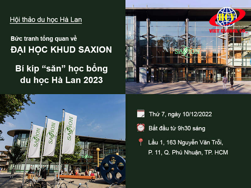 Nhằm đem đến cho phụ huynh và học sinh, sinh viên cái nhìn tổng quan về Đại học Khoa học Ứng dụng Saxion, Du học Viet Global đã phối hợp với Mr. Artur – đại diện tuyển sinh của trường, cùng tổ chức buổi hội thảo chia sẻ thông tin chi tiết và tư vấn trực tiếp cho từng trường hợp học sinh để các bạn có được định hướng và lộ trình phù hợp nhất trước khi thực hiện kế hoạch du học Hà Lan trong năm 2023.